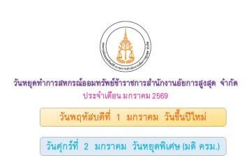 วันหยุดสหกรณ์ฯ ประจำเดือน มกราคม 2569