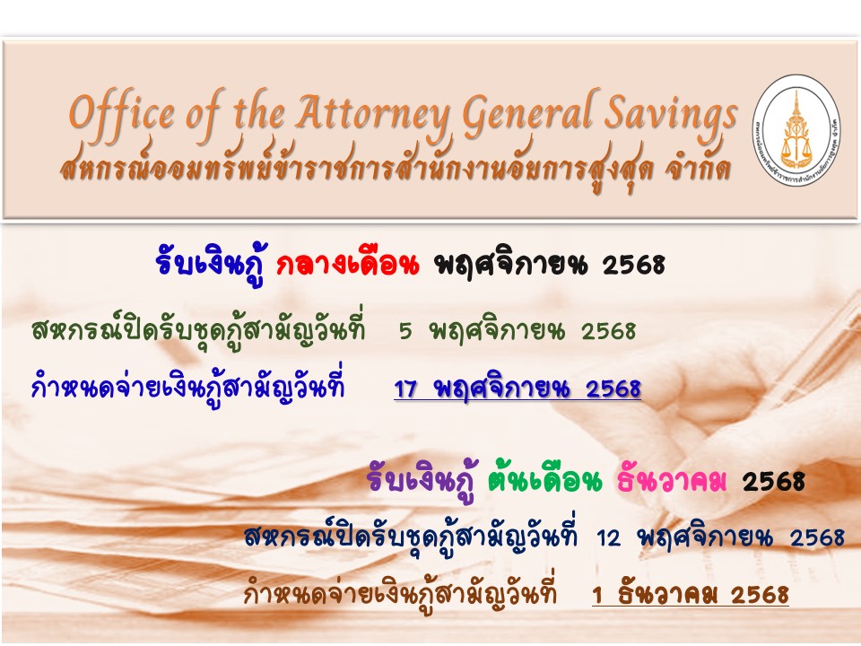 วันหยุดสหกรณ์ฯ ประจำเดือนตุลาคม 2568
