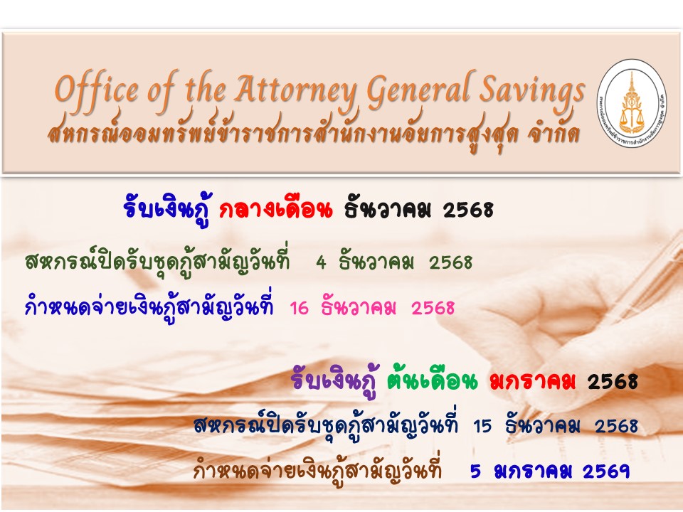 ประกาศ เรื่อง กำหนดวันปิดรับการโอนเงินชำระหนี้เงินกู้ทุกประเภท