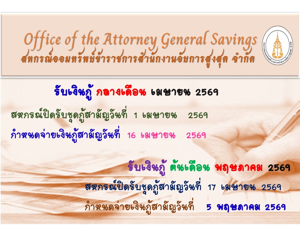 วันหยุดสหกรณ์ฯ ประจำเดือน เมษายน 2569