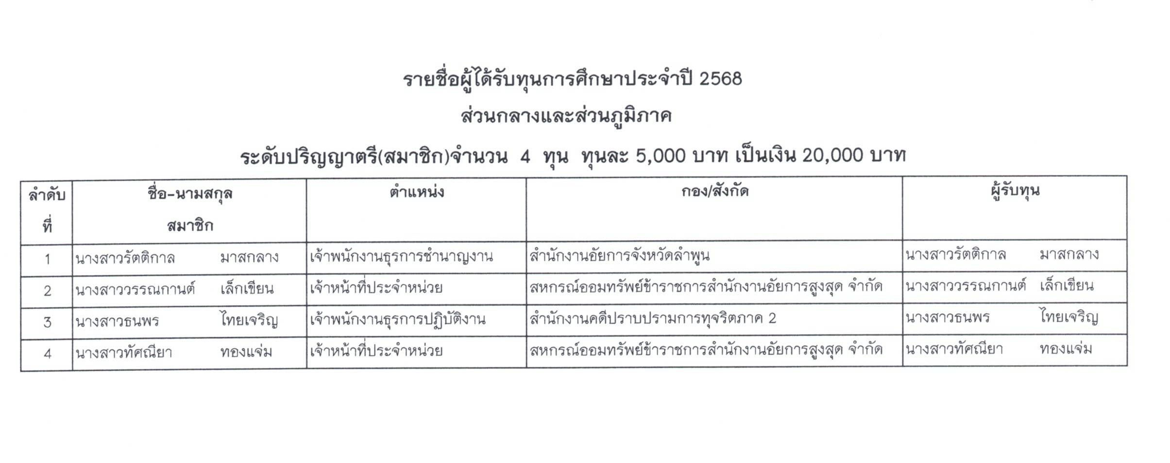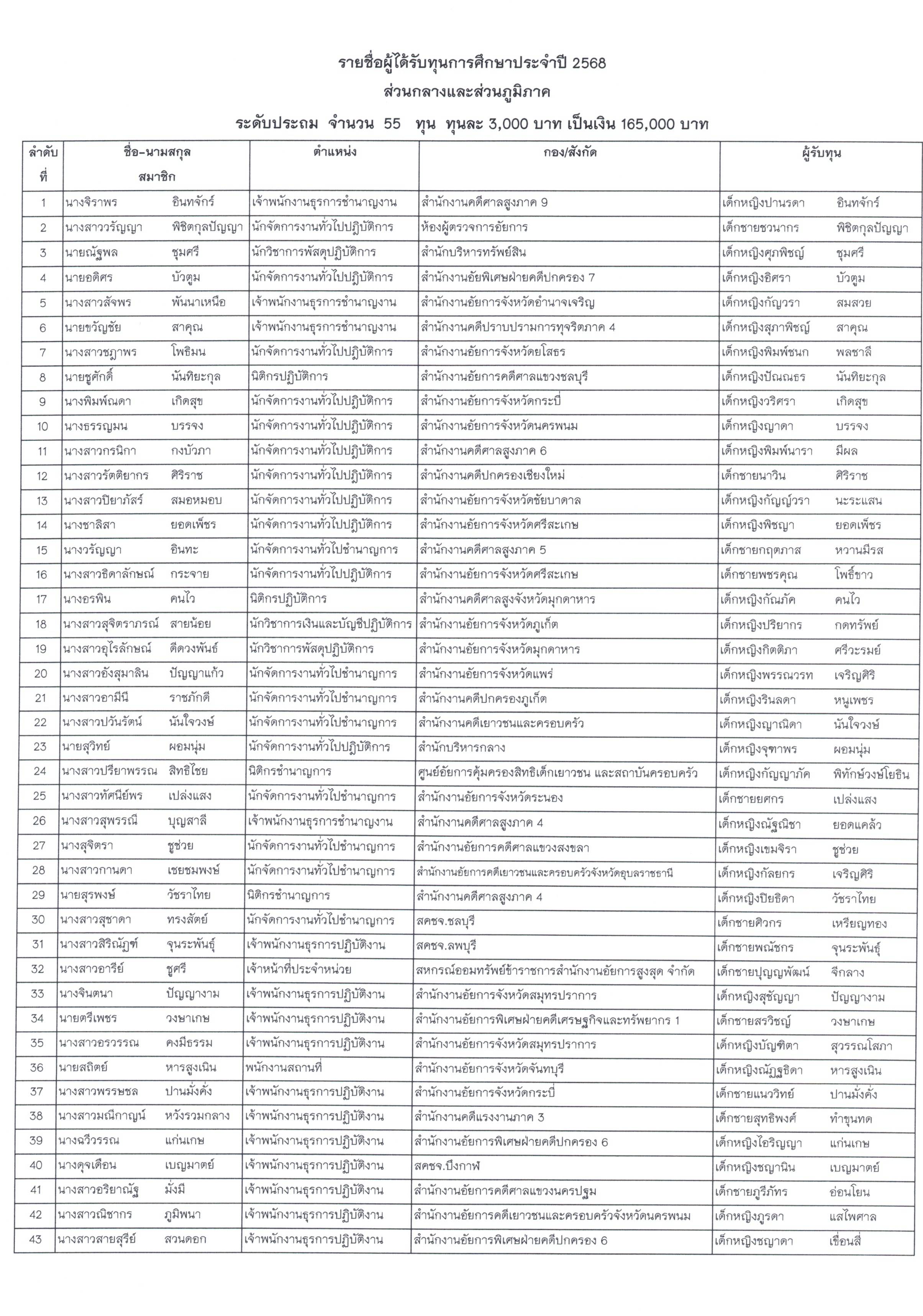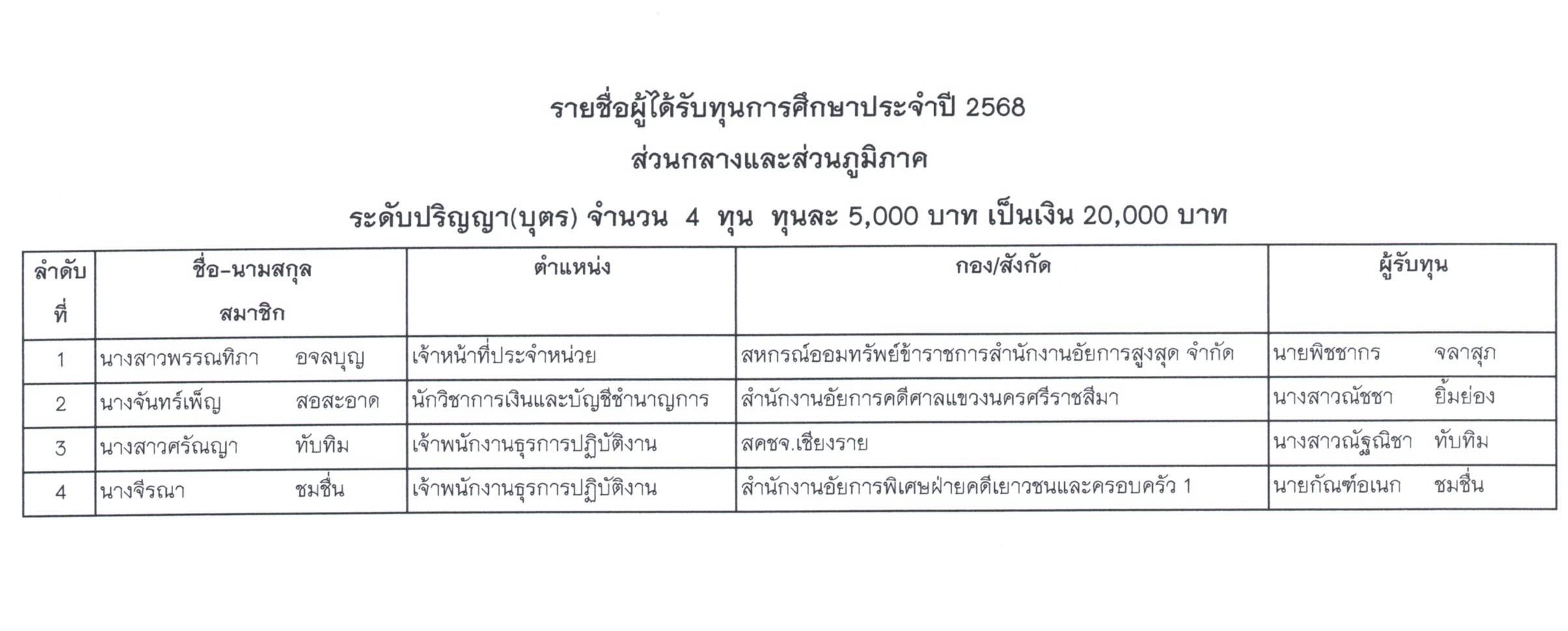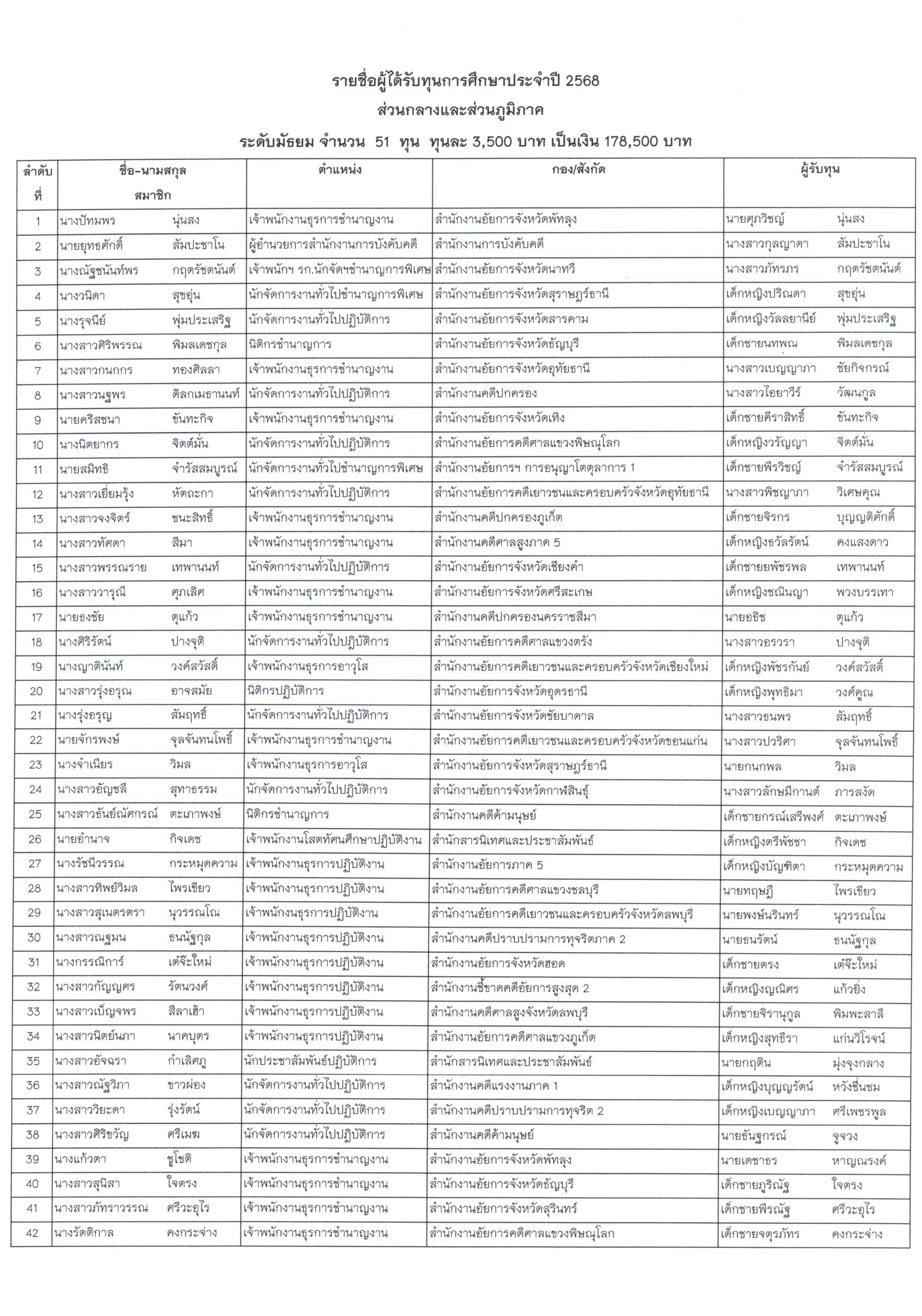 ประกาศ เรื่อง รายชื่อผู้ได้รับทุนส่งเสริมการศึกษาประจำปี ๒๕๖๘
