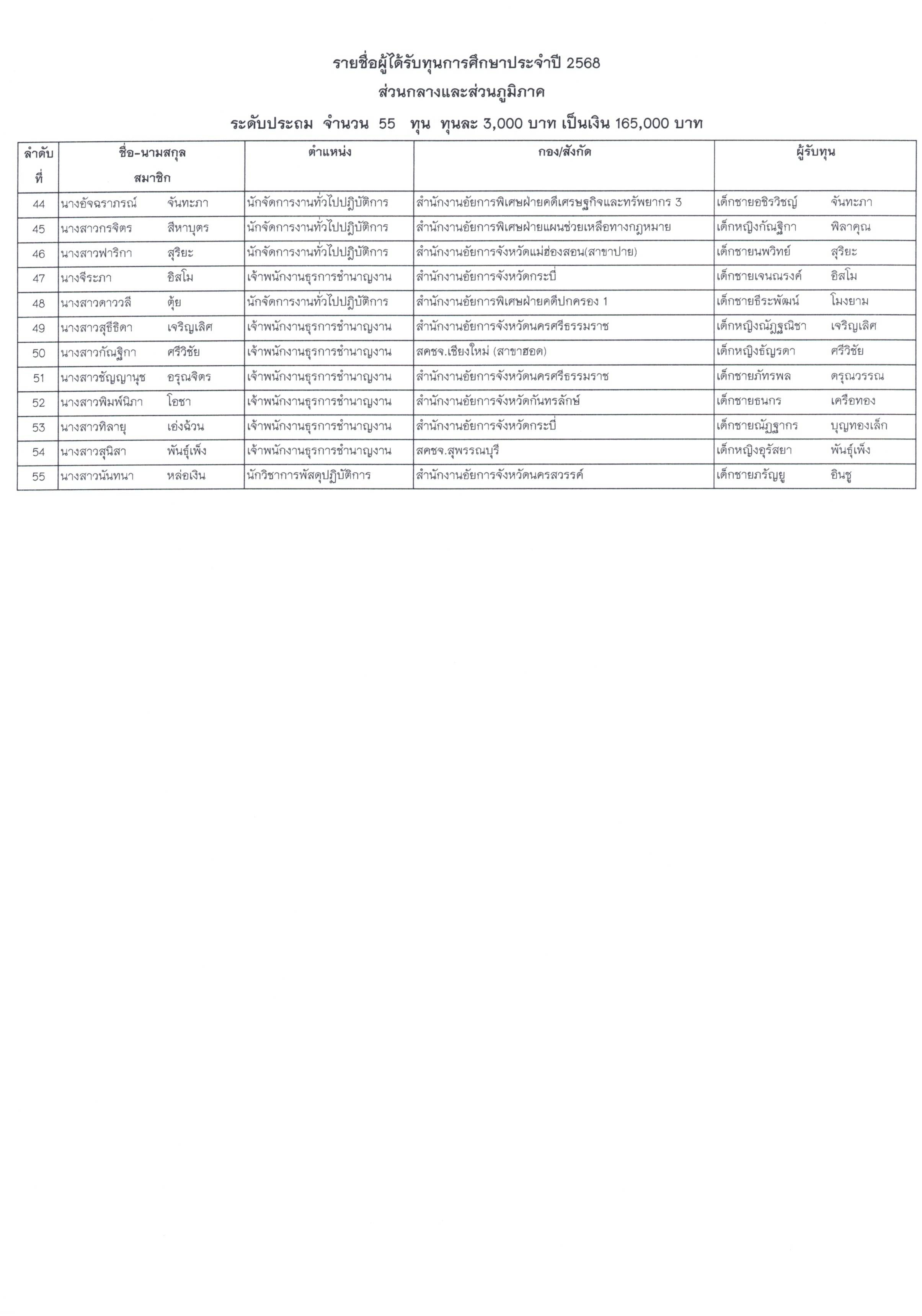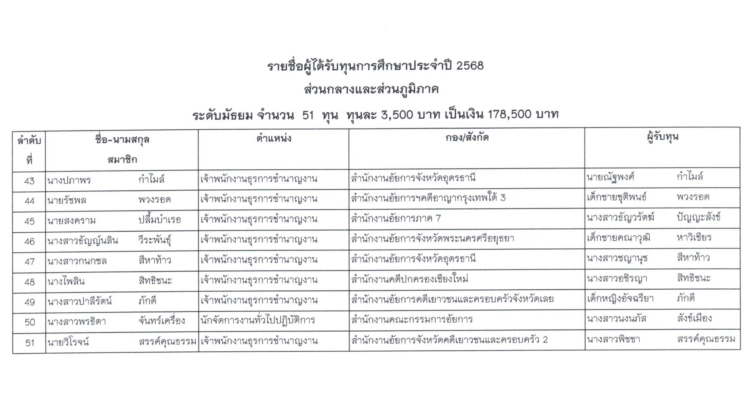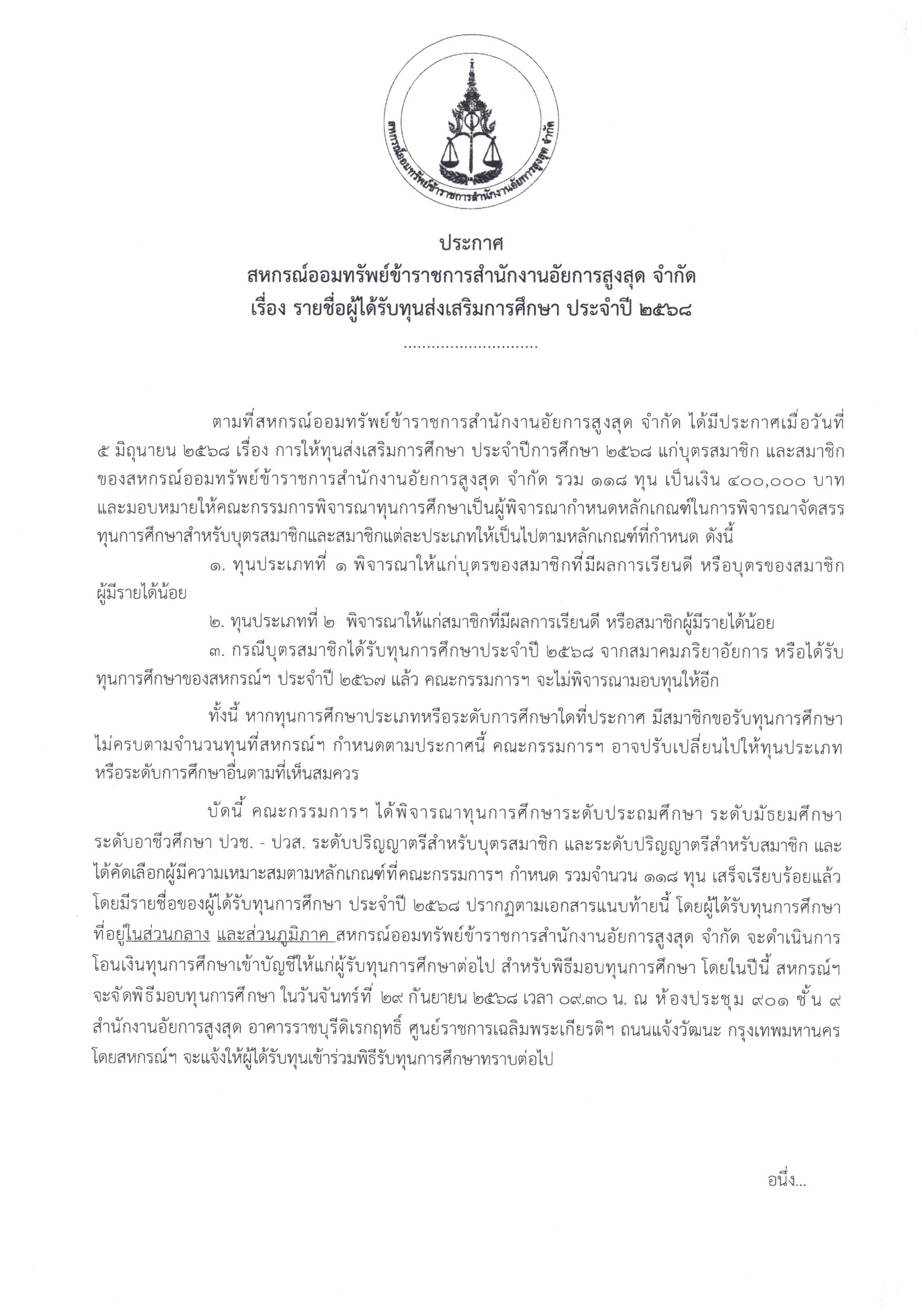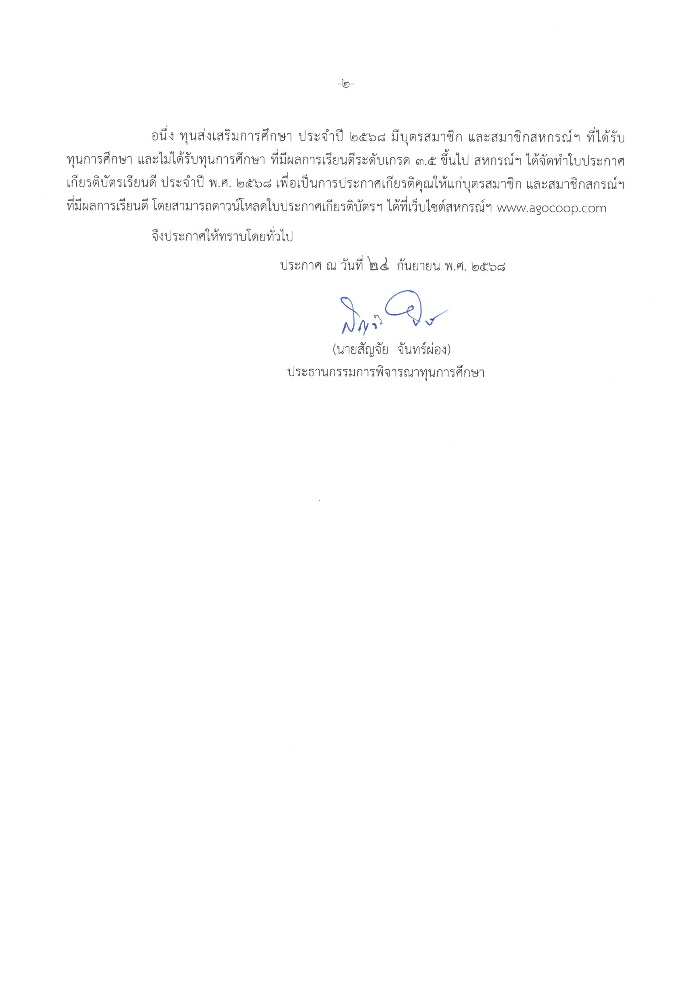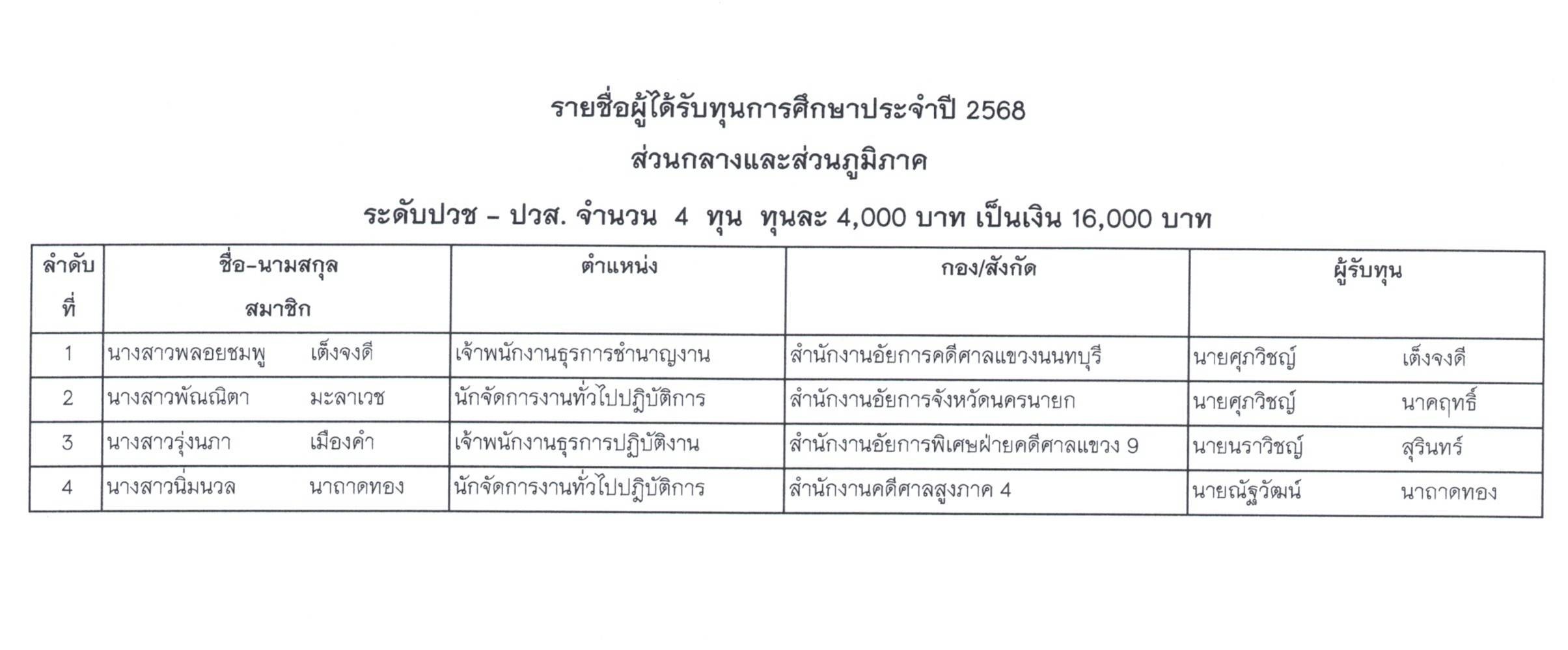 ประกาศ เรื่อง รายชื่อผู้ได้รับทุนส่งเสริมการศึกษาประจำปี ๒๕๖๘