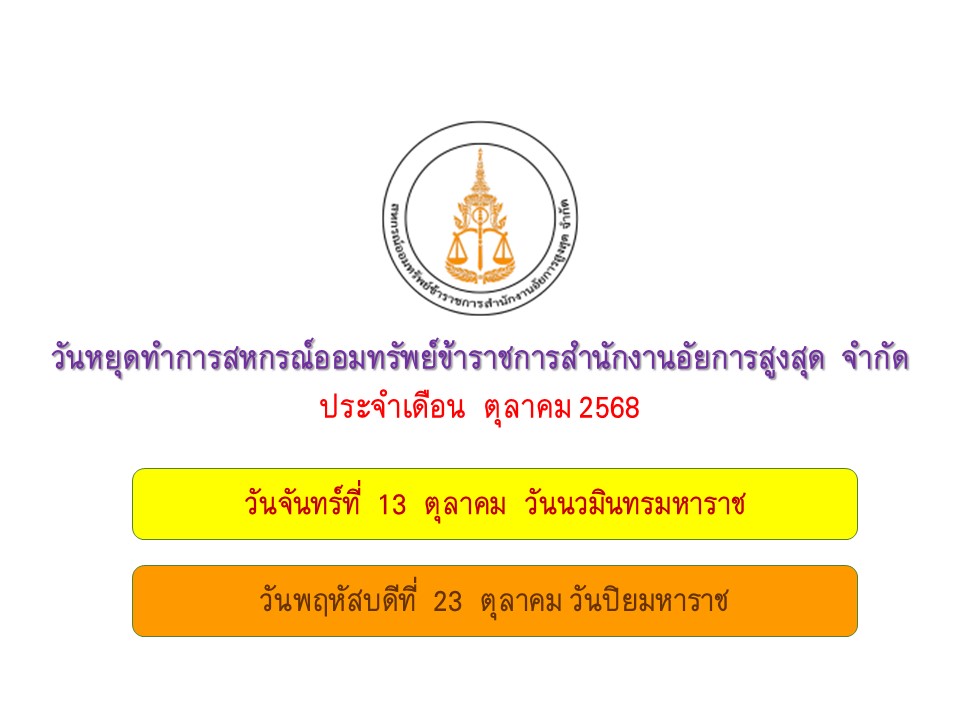 วันหยุดสหกรณ์ฯ ประจำเดือนตุลาคม 2568