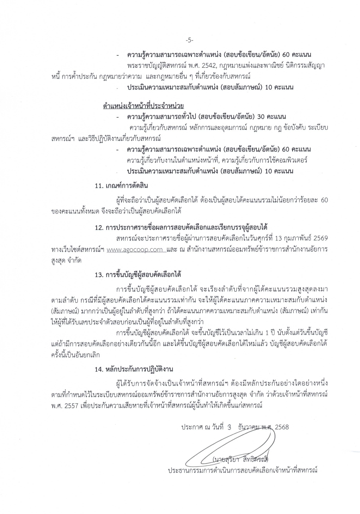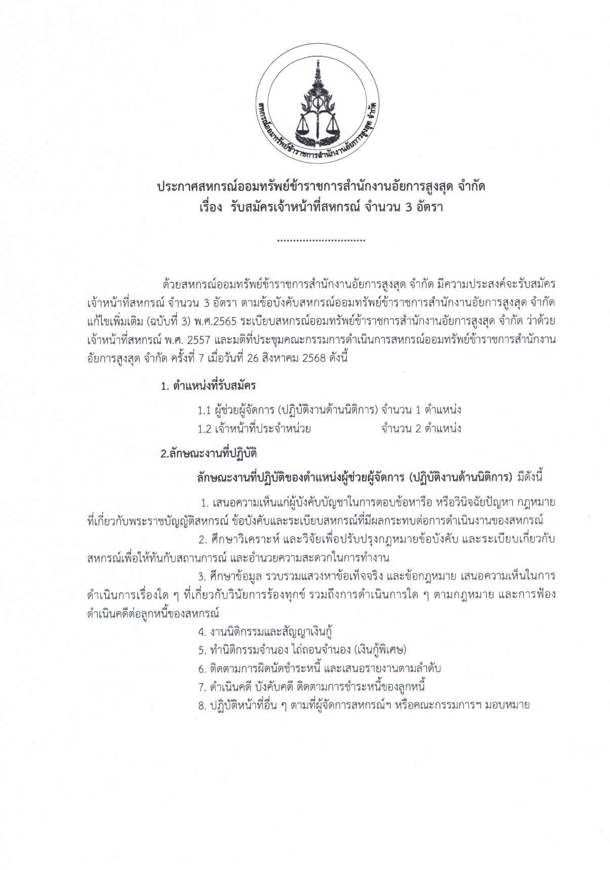 ประกาศ เรื่อง รับสมัครเจ้าหน้าที่สหกรณ์ จำนวน 3 ตำแหน่ง
