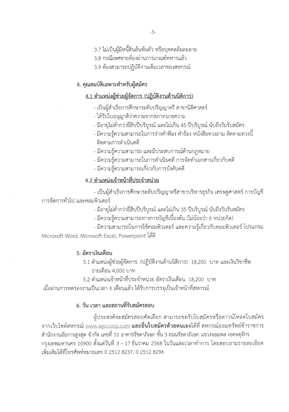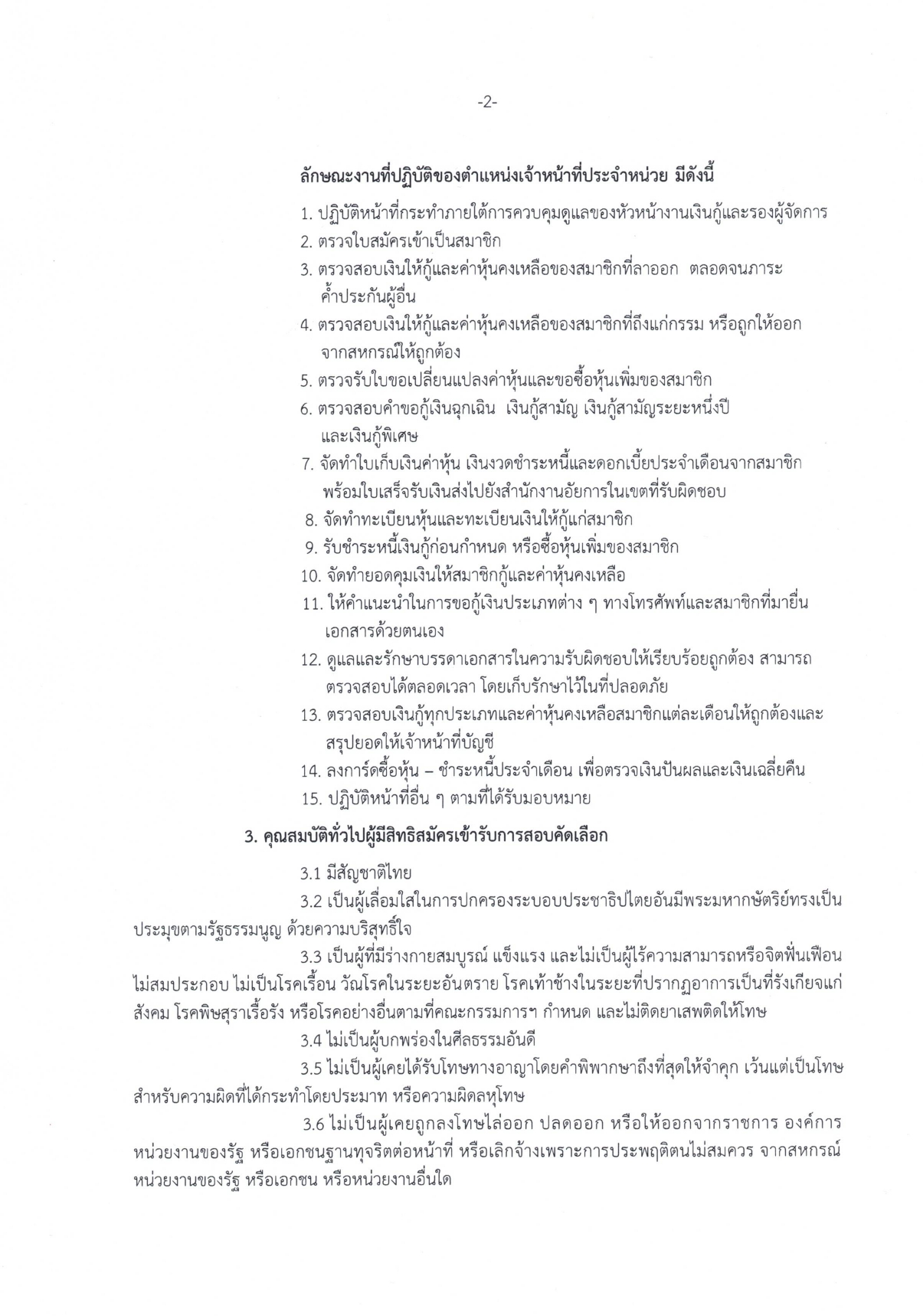 เรื่อง รับสมัครเจ้าหน้าที่สหกรณ์ จำนวน 3 ตำแหน่ง