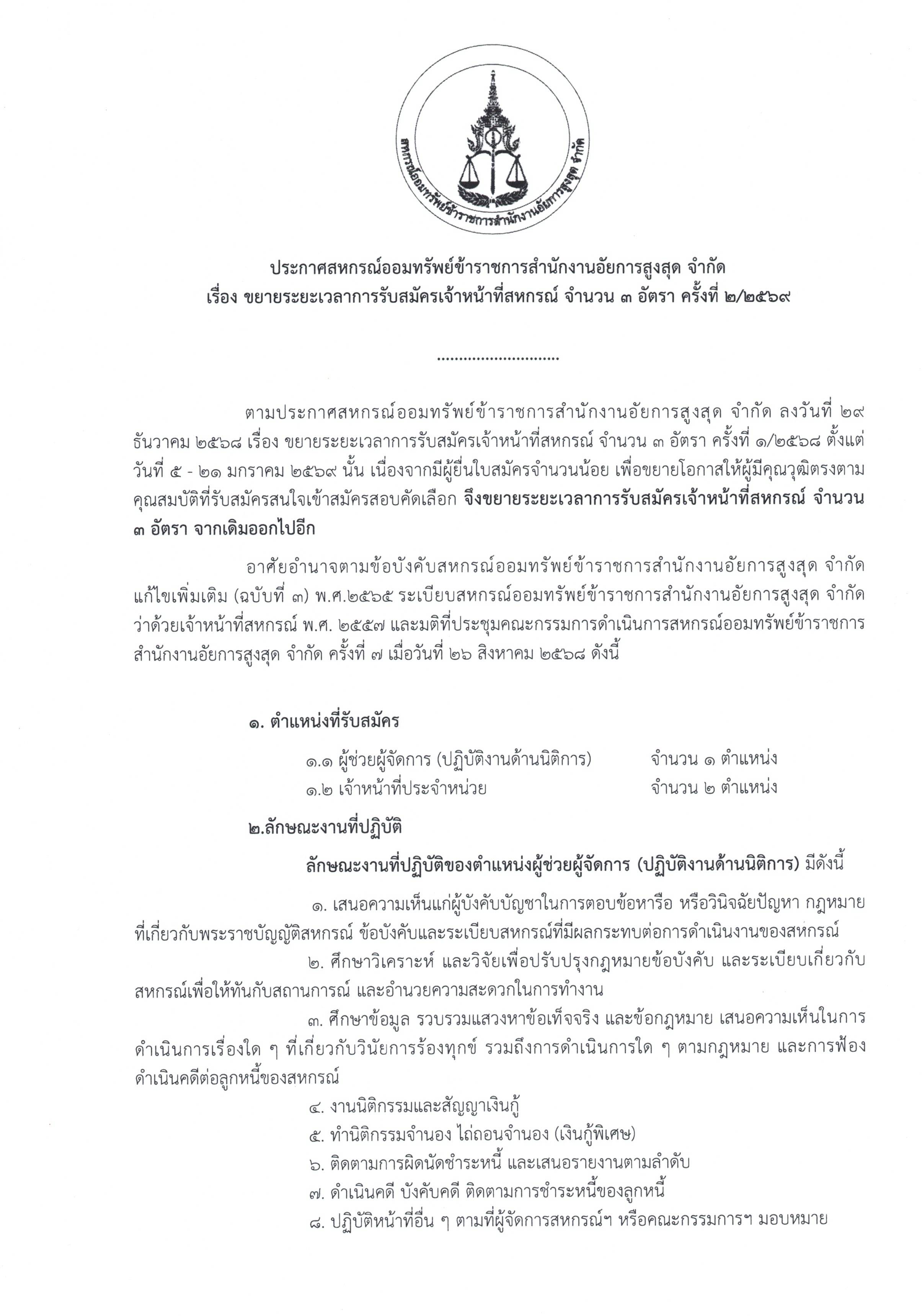 ประกาศ เรื่อง ขยายระยะเวลาการรับสมัครเจ้าหน้าที่สหกรณ์ จำนวน ๓ อัตรา ครั้งที่ ๒/๒๕๖๙
