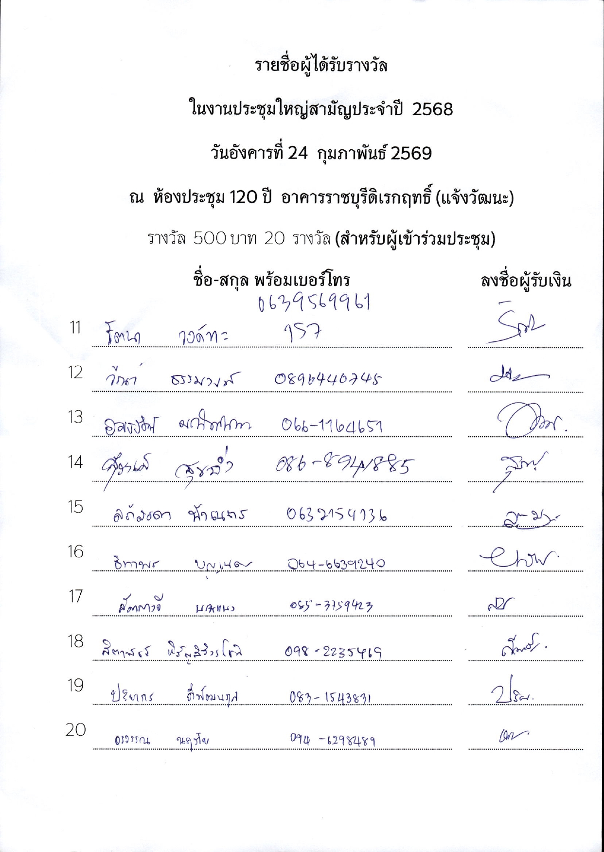 รายชื่อผู้ได้รับรางวัลในงานประชุมใหญ่สามัญประจำปี 2568